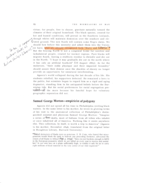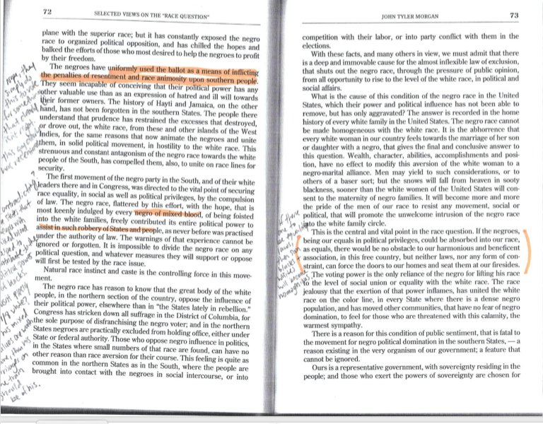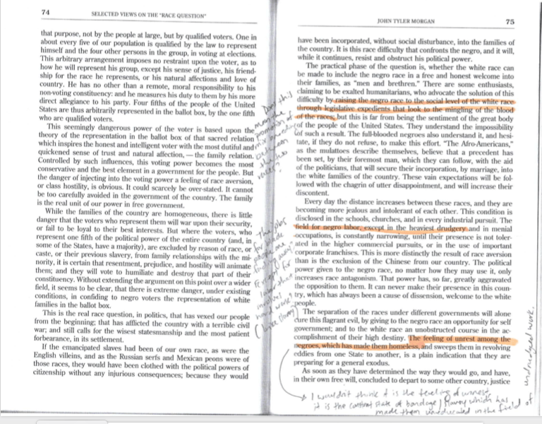 The claim, I believe is that there had always been a race aversion naturally for thousands of years and that blacks are inherently of a lower status than whites. He also tries to convince his readers that blacks were practically forced to conform with white people, which had created more strife and hardships for the black person.